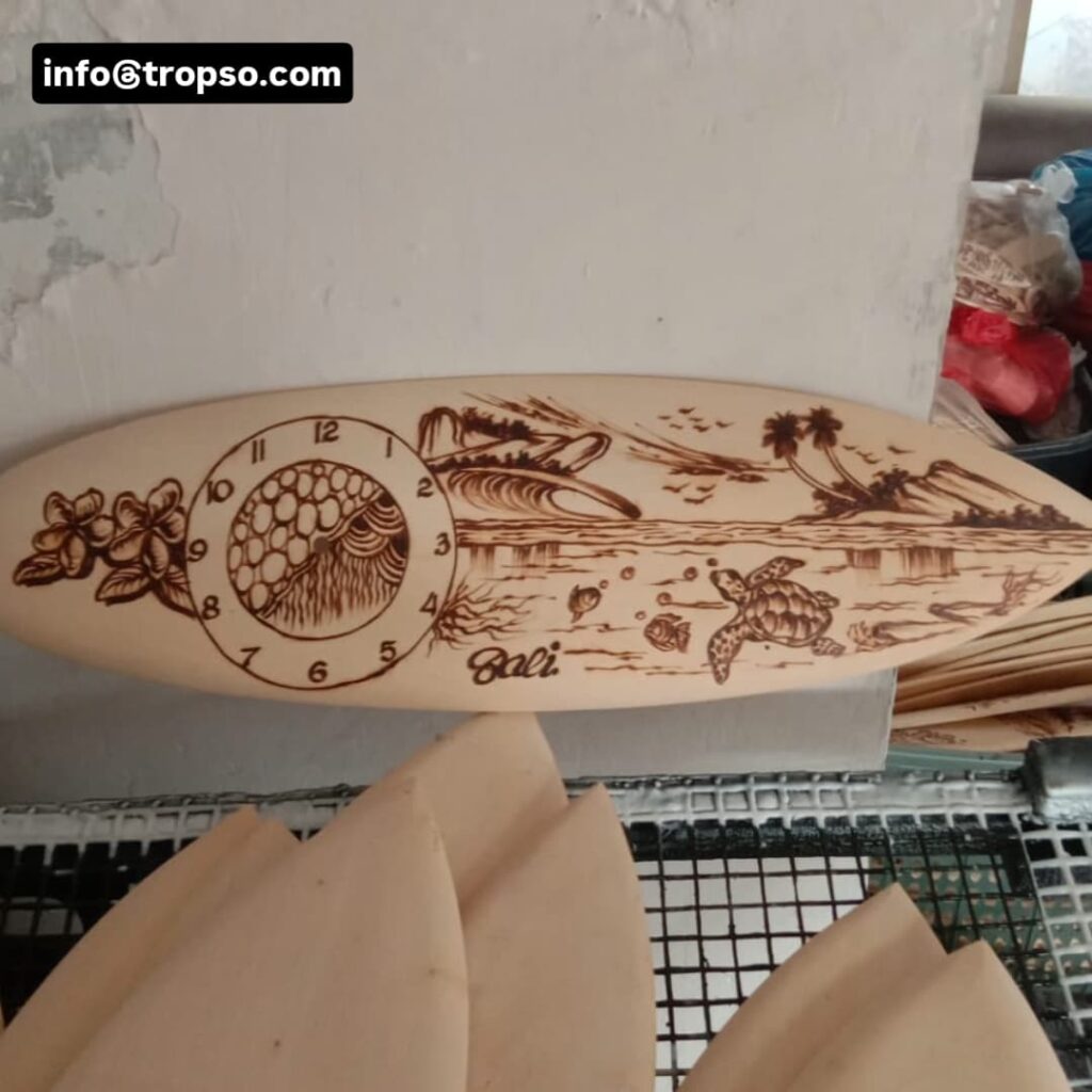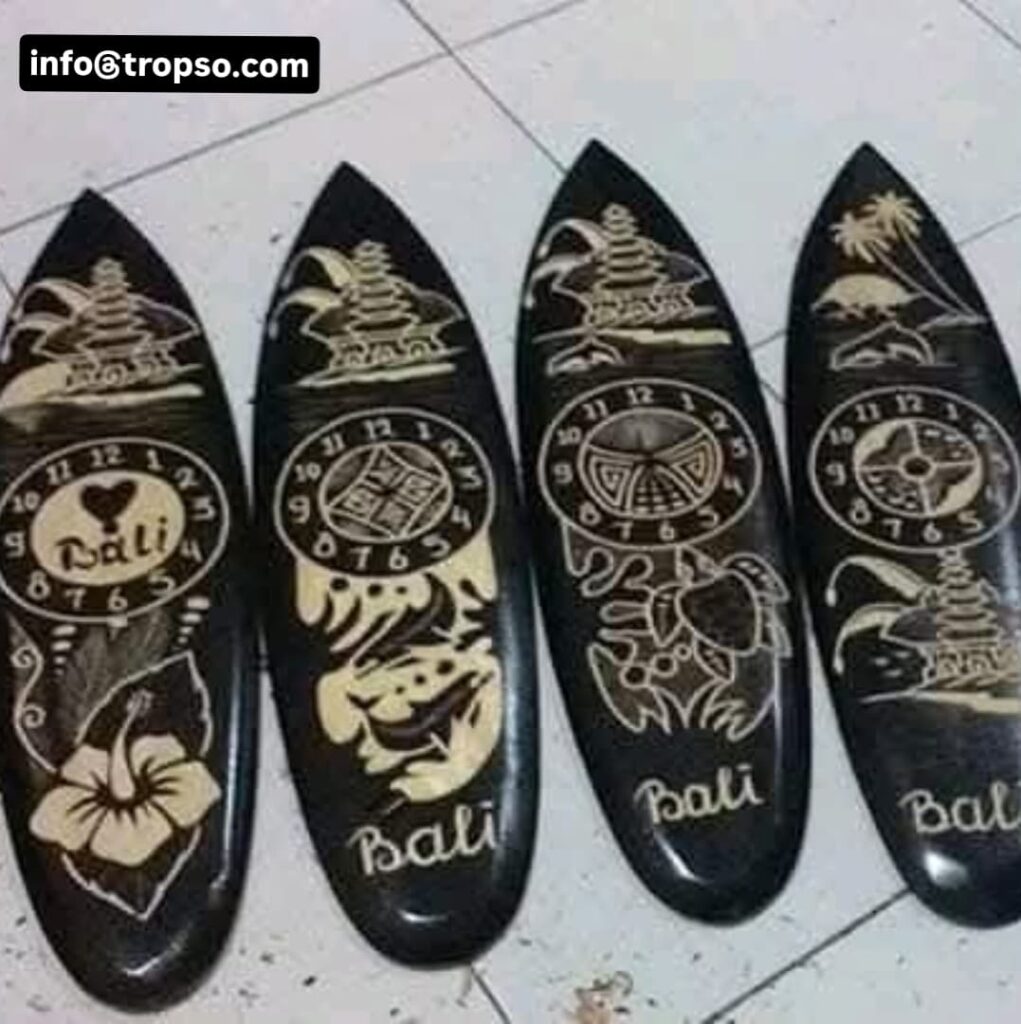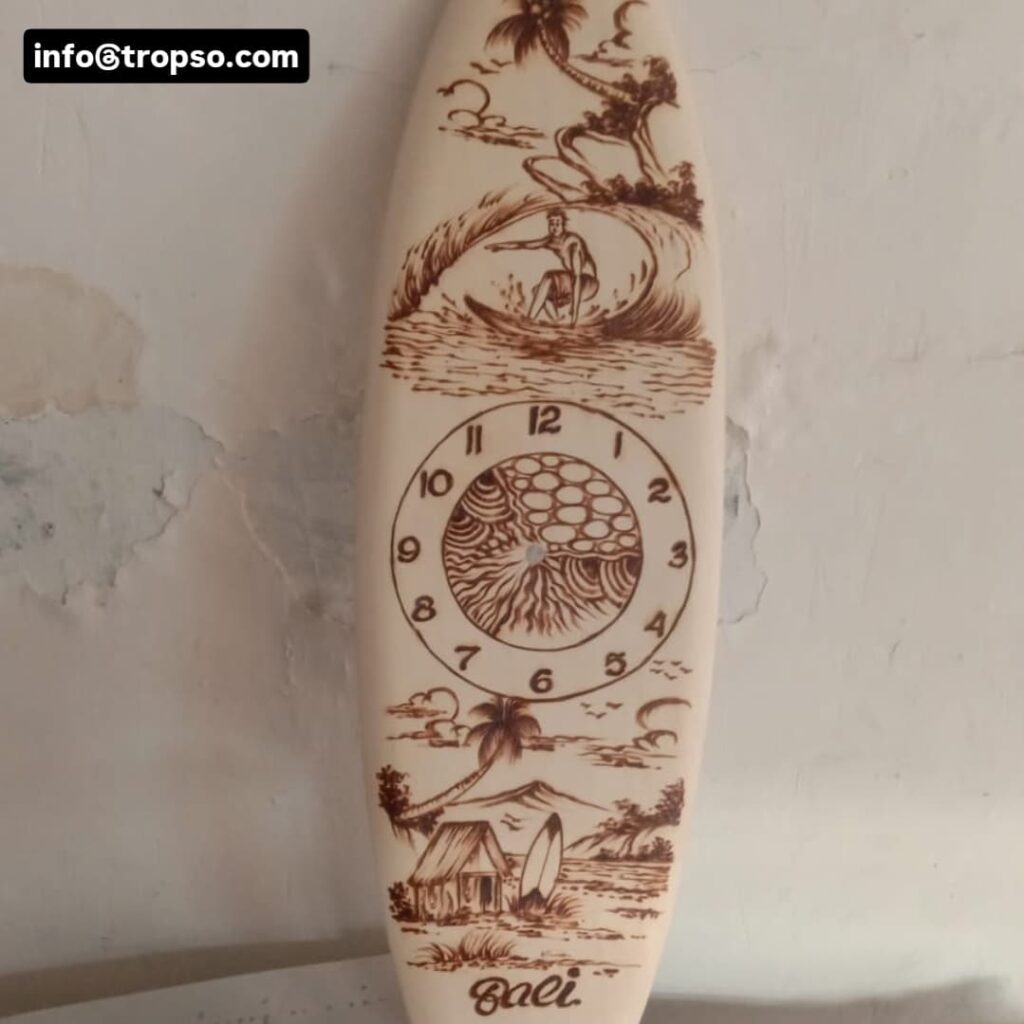 Surfboard wall clocks can be an interesting souvenir option to take home, display at home, or give to loved ones. We make various models, shapes, and sizes of surfboard wall clocks. We can make orders according to buyer requests.