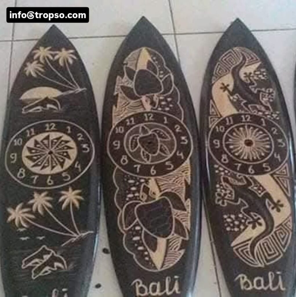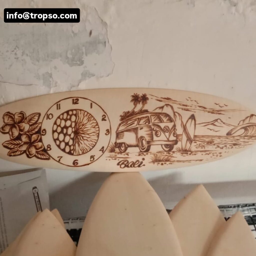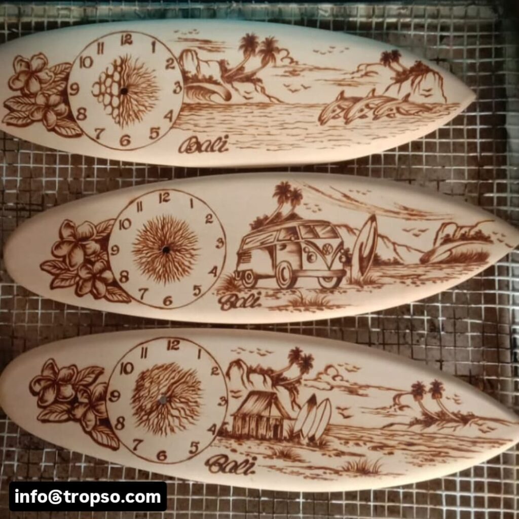 Surfboard wall clocks can be an interesting souvenir option to take home, display at home, or give to loved ones. We make various models, shapes, and sizes of surfboard wall clocks. We can make orders according to buyer requests.
